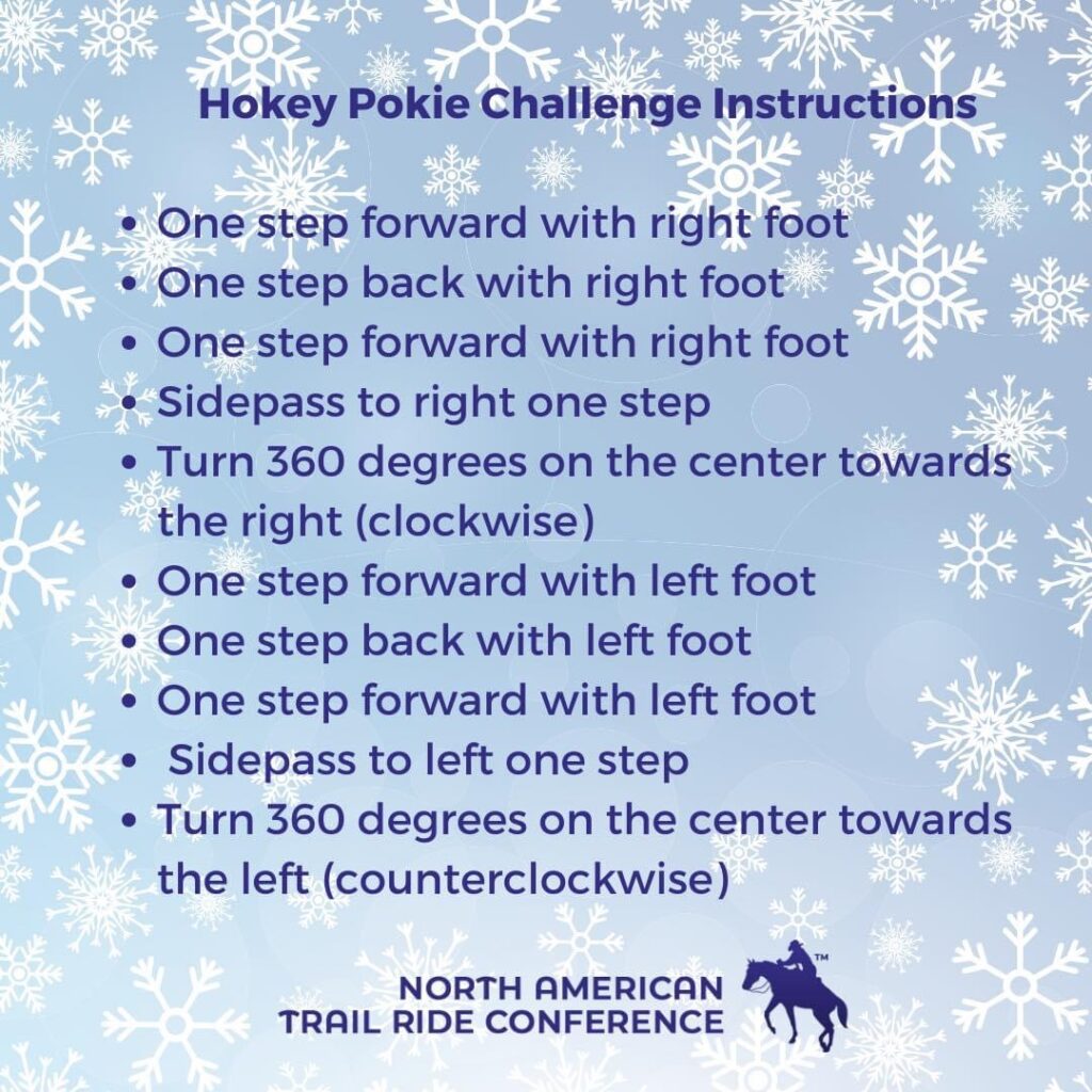 Welcome to our NATRC Holiday Hoedown Challenge! This is a virtual challenge that you and your equine partner will do once a month at your own location, record a video and upload to our brand new challenge website. Open to ALL membership levels. Be sure to renew your membership today.