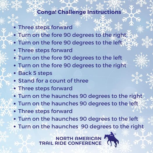 And it’s time for our next Holiday Hoedown Challenge: the Conga! See the demo. The Conga starts today and runs until 1/03/2021. Again, music optional. Mainly we want to see you have fun with your horse and show off your skills. Conga!