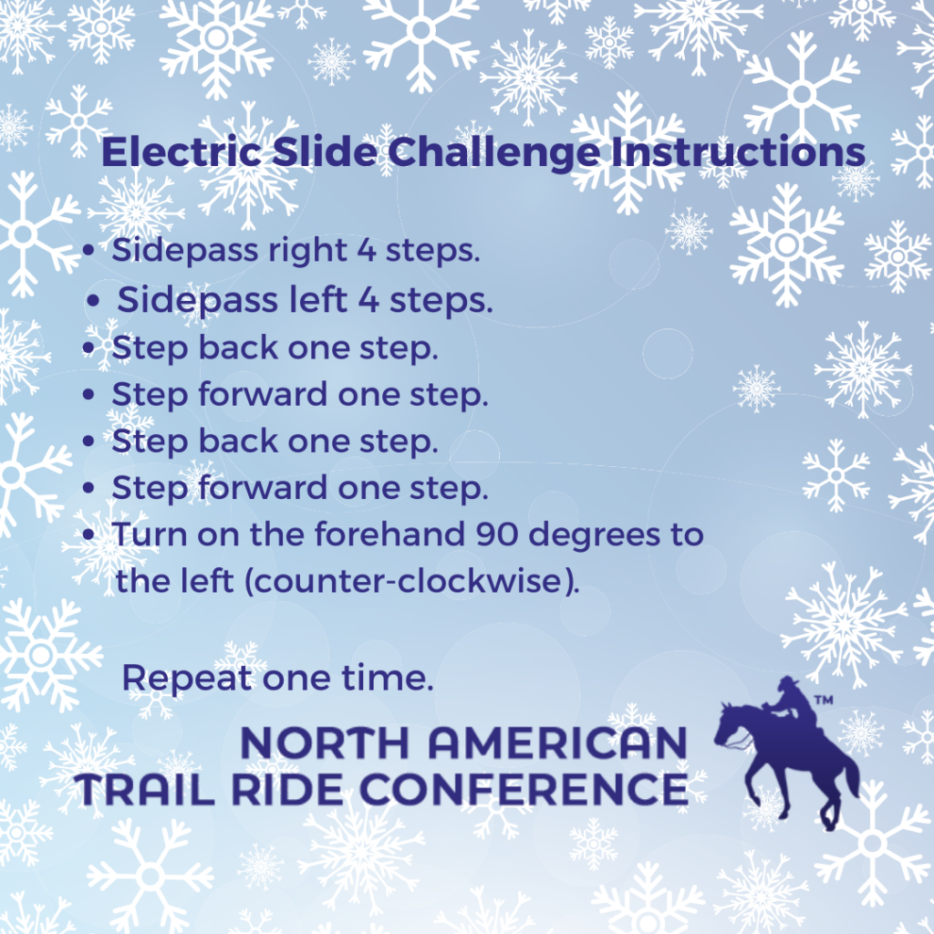 Get ready to sliiiiiddddddeeee! The Electric Slide is our third and final NATRC Holiday Hoedown Challenge. We saved the best for last. See the demo. The Slide starts today and runs until 2/03/2021. Again, music and costumes are totally optional but if they help you get into the groove, they are definitely encouraged! Have fun and show off your skills!